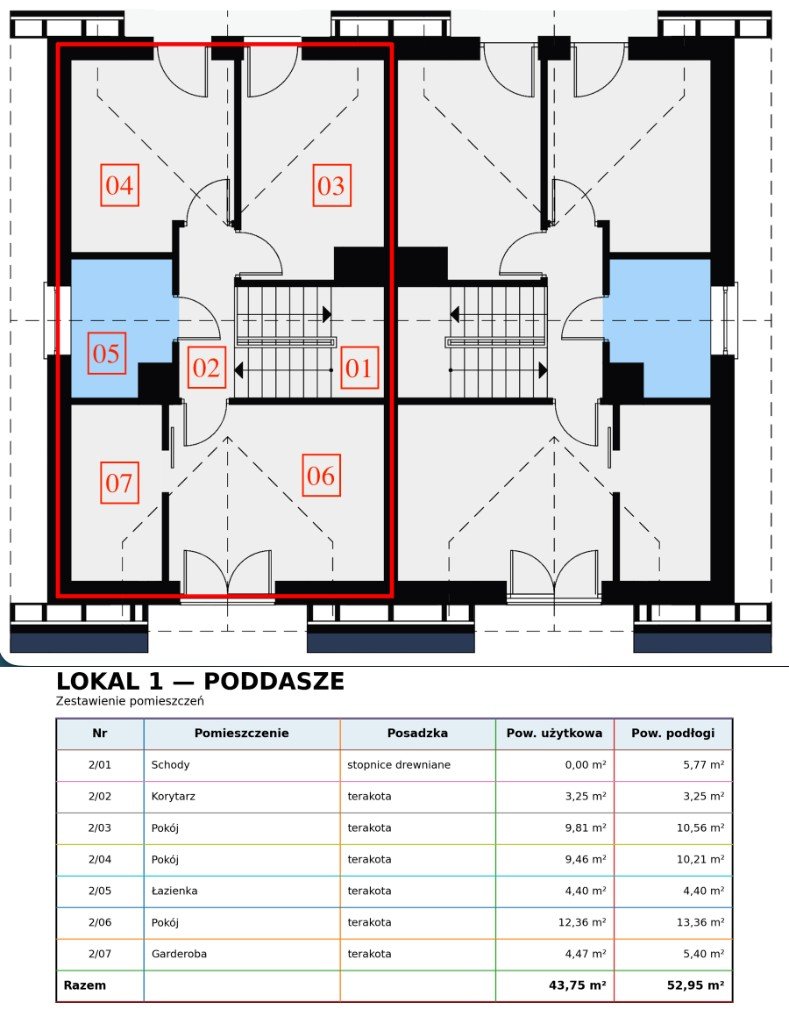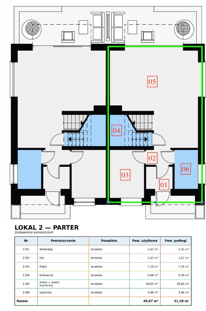 | 2/05 | Łazienka | terakota | 4,40 m² | 4,40 m² |