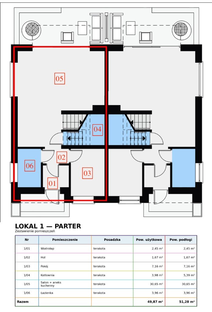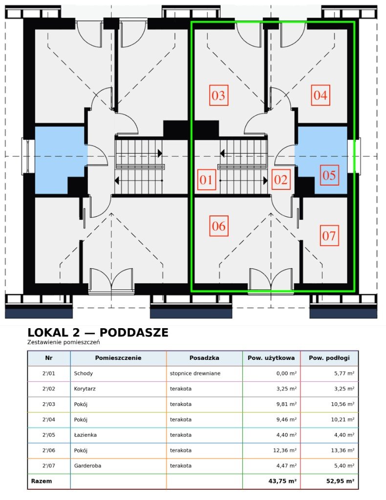 | 2/05 | Łazienka | terakota | 4,40 m² | 4,40 m² |